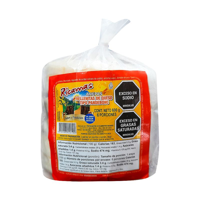 Arepa maiz RICAMAS rellenas de queso x600 g