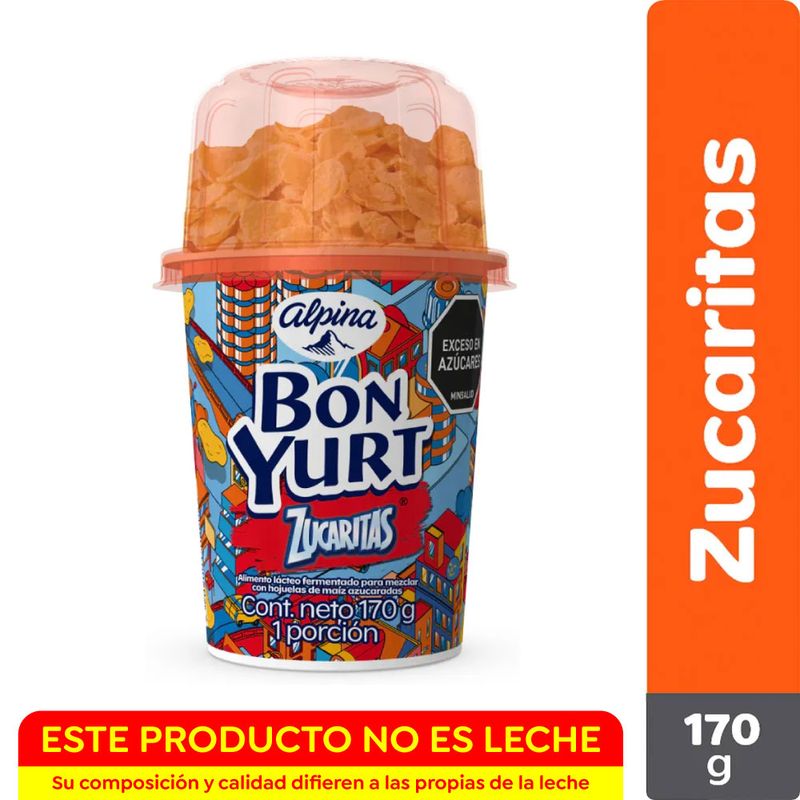 Bon Yurt es un producto con base láctea con cereal que aporta naturalmente proteína de buena calidad listo para consumir en cualquier momento del día y fácil de llevar contigo.Mezcla tu Bon Yurt con nuestros toppings de cereales como Zucaritas y Choco Krispis, así como barquillos Piazza, bolitas de maíz cubiertas de chocolate en Chocogozzo y galleta triturada en Black. Cada vez que pidas un Bon Yurt, te estarás comiendo el mundo como quieras.