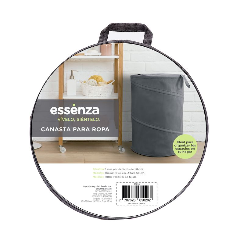 Practica canasta para la ropa de lavar, fabricada en un textil resistente, se puede abatir de manera practica para guardar cuando no está en uso, ideal para la zona de lavado del hogar; tambien puede ser utilizado para almacenar otros objetos peluches o juguetes infantiles.