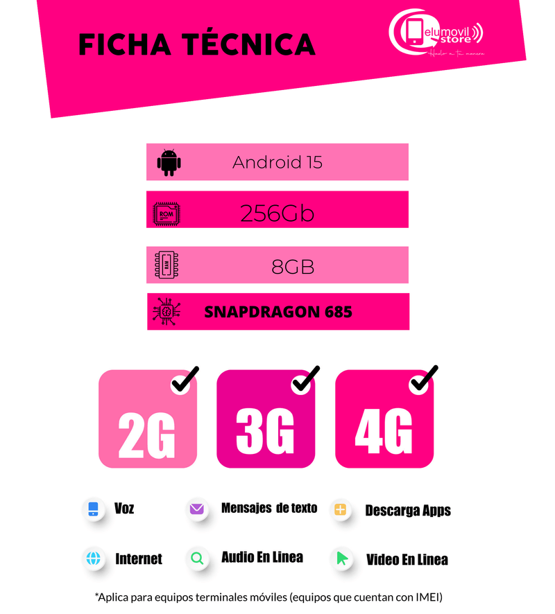 - Procesador: Snapdragon 685 (hasta 2.8 Ghz)