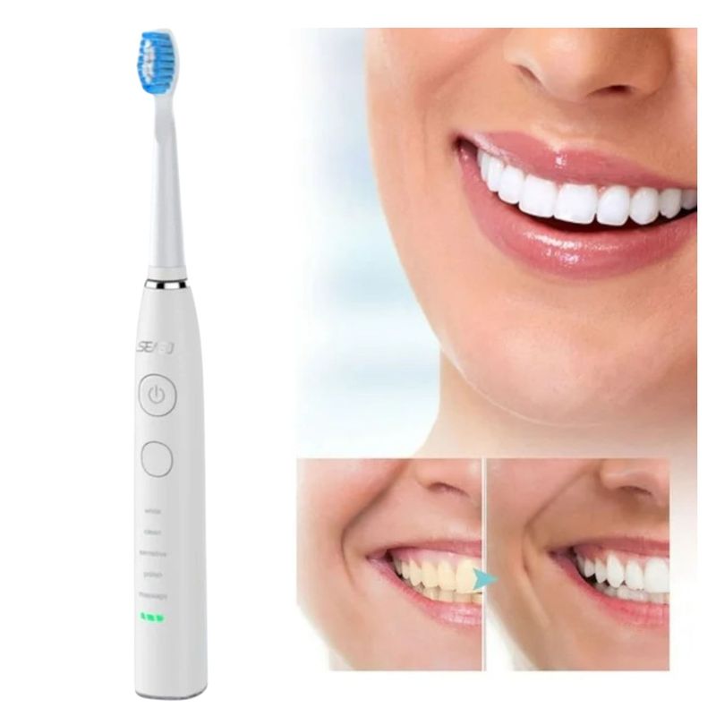 Transforma tu rutina de higiene bucal con este cepillo eléctrico recargable, diseñado para proporcionar una limpieza profunda y eficiente. Gracias a su tecnología sónica, elimina hasta el 100% más de placa en comparación con los cepillos manuales tradicionales, garantizando una sonrisa más saludable y brillante.