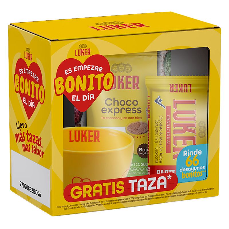 Chocolate choco express x200 g + Chocolate luker x112 g gratis taza