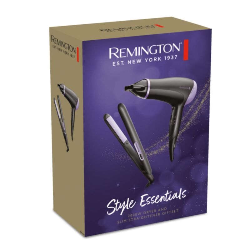 Combo Secador + Plancha D3016GP-110F Remington MoradoPrepárate para regalar un cabello llamativo a alguien que amas, o regálate el set de regalo Style Essentials. Esta combinación de secador de pelo y planchita trabajan juntos para crear resultados elegantes y de aspecto más saludable. El potente motor de 2000 Watts de la secadora permite un secado rápido y su rejilla iónica de cerámica garantiza una distribución uniforme del calor y resultados antiestáticos, ideales para resultados suaves. La plancha tiene una función de calentamiento rápido, por lo que estará lista para usar en solo 30 segundos, ideal para mañanas ocupadas. Las placas flotantes están recubiertas de cerámica para lograr un calor uniforme y resultados rectos.