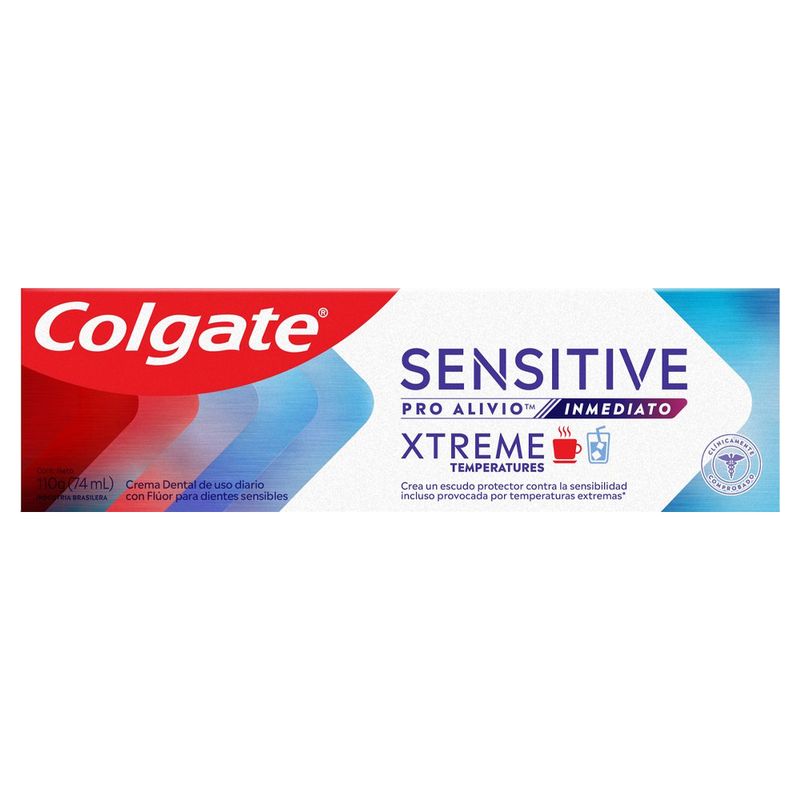 Colgate Sensitive Pro Alivio Xtreme Temperatures enriquecida con flúor y Arginina es ideal para el cuidado de los dientes y la salud bucal porque crea una barrera protectora brindando un alivio duradero contra la sensibilidad dental**.