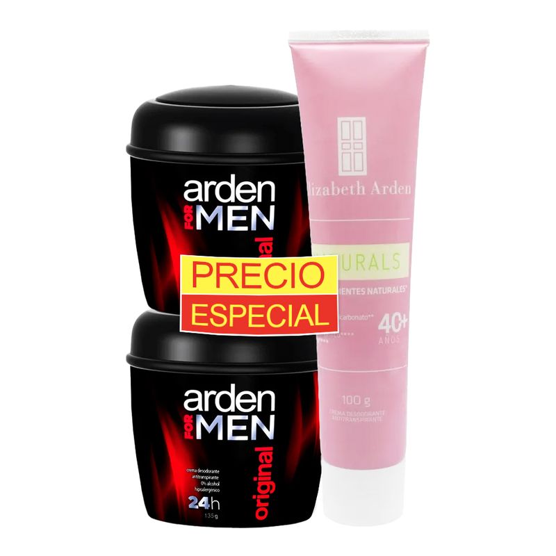 Desodorante ARDEN FOR MEN original 2 unds x100 g c/u + desodorante Elizabeth
