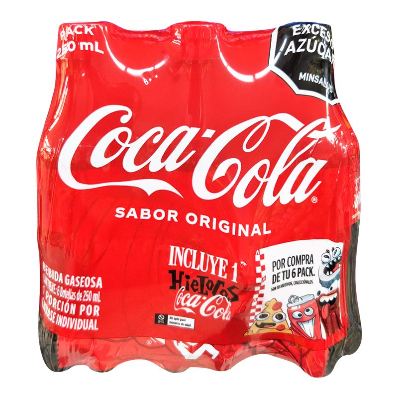 Gaseosa COCA COLA original 6 unds x250 ml c/u gratis hieloco