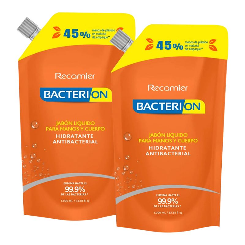 Jabón líquido BACTERION antibacterial 2 unds x1000 ml precio especial