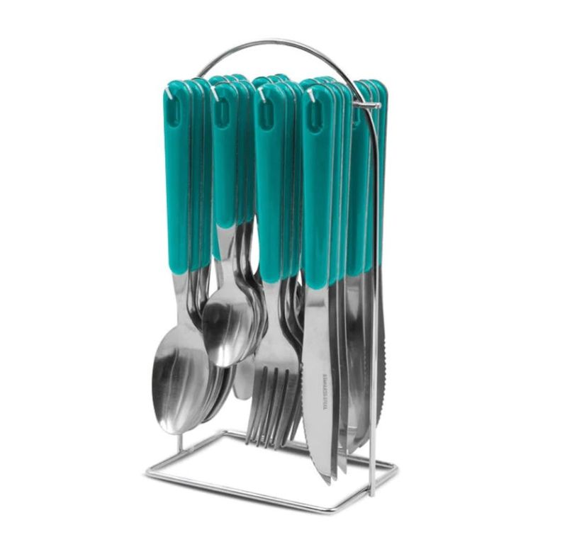 Juego de Cubiertos 6 Puestos 24 Piezas Mango Plastico con Soporte
