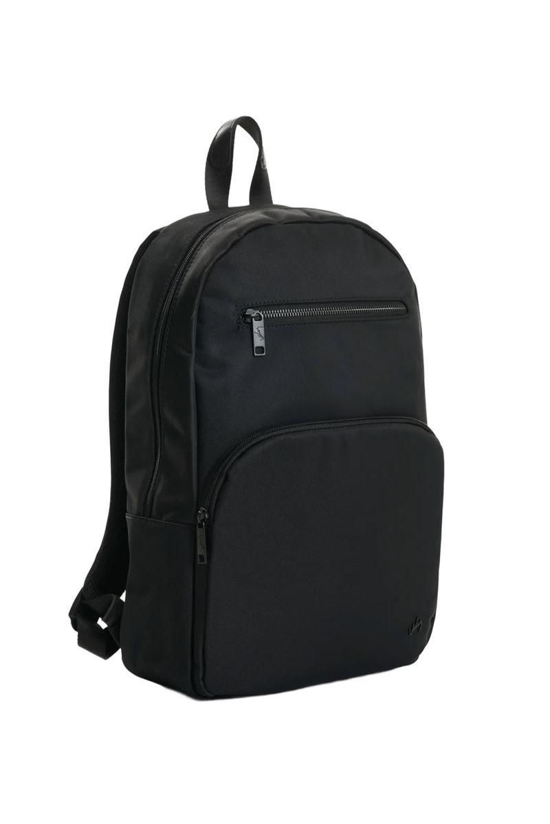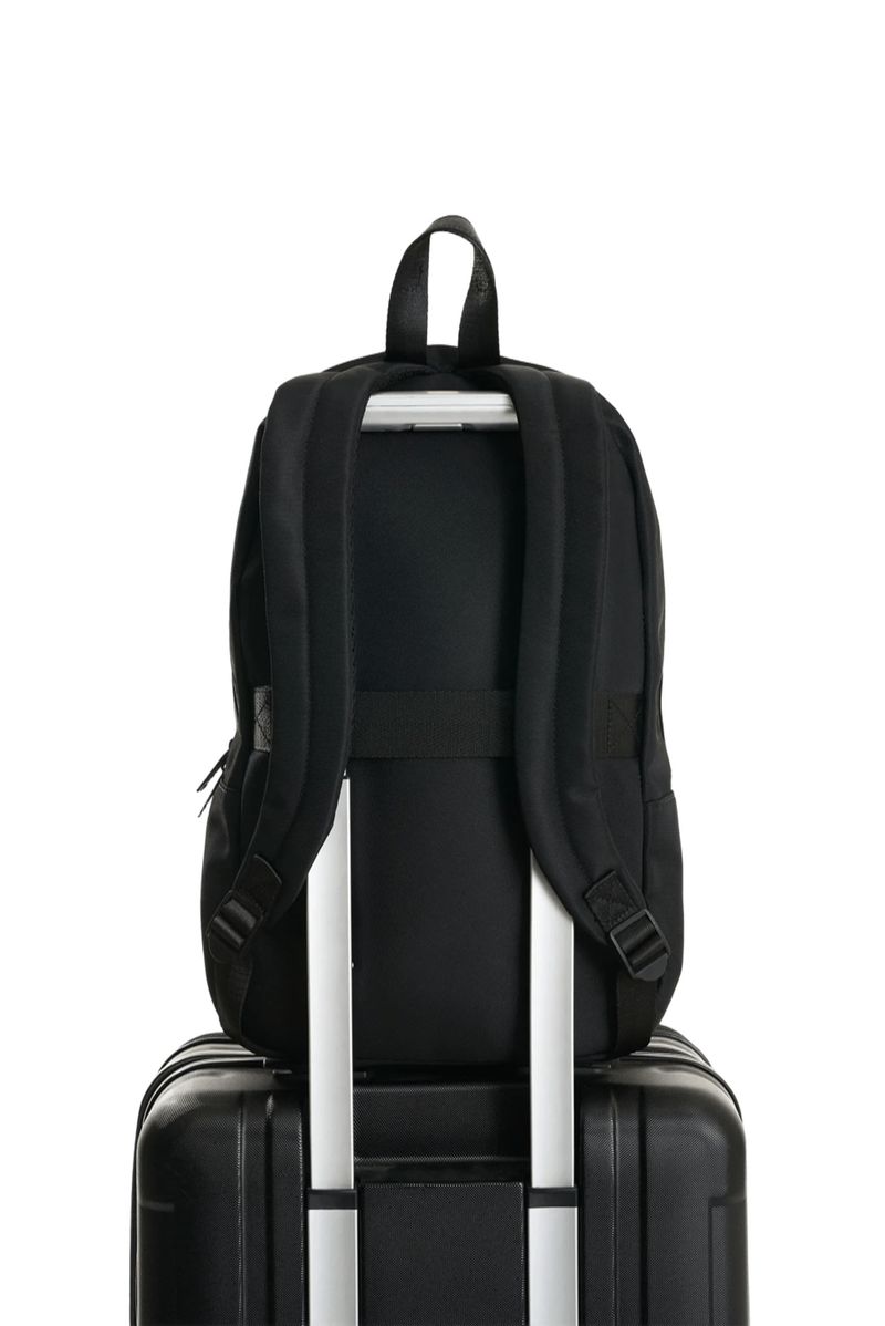 Diseño limpio y sofisticado en una pieza versátil para la rutina y los viajes. Este morral, elaborado en lona de poliéster con detalles en acabado metálico, equilibra funcionalidad y estética atemporal. Sus compartimentos organizan lo esencial con practicidad, mientras las cargaderas acolchadas y la manija superior aportan confort. Perfecto para combinar con looks formales relajados o estilismos casuales y urbanos.