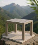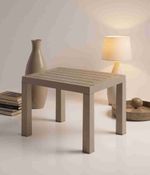 Su forma cuadrada mide 40 x 40 x 45 cm, con peso ligero (aprox. 2 kg) para armar en minutos sin herramientas. El acabado en tonos neutros como wengue o gris evoca madera natural, resistente a humedad y rayones para interiores o exteriores – ¡minimalismo que integra sin esfuerzo!
