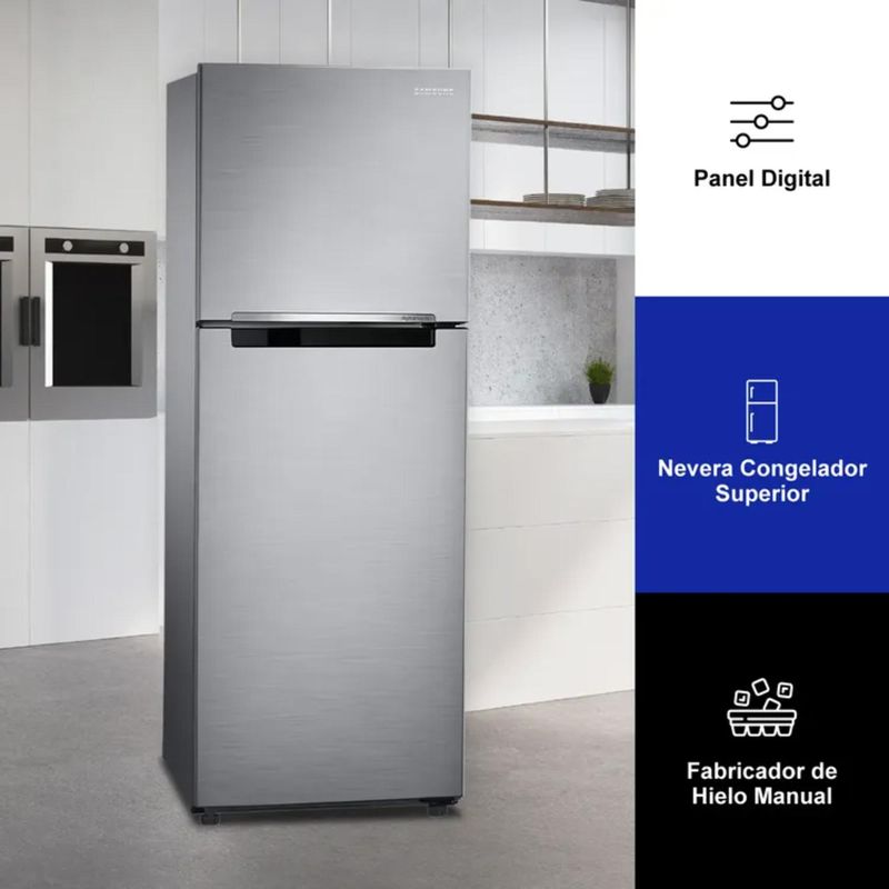 La nevera SAMSUNG RT22FARADS8/CO cuenta con una mayor frescura en sus espacios debido a que tiene múltiples salidas de aire que proporcionan un enfriamiento más uniforme, garantizando que llegue aire frio a todos los compartimientos. Además tiene un Compresor Digital Inverter con 20 años de garantía, que nos da ahorro de energía y brinda mayor durabilidad. Así mismo cuenta con amplios espacios que permiten que tus alimentos estén mejor organizados. Adquierela Ya!!