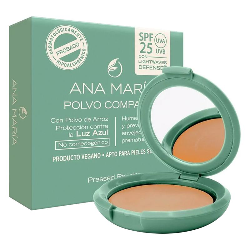 Polvo compacto ANA MARIA está elaborado con fino polvo de arroz y aloe vera, ingredientes naturales que humectan la piel sin obstruir los poros, contiene 20 SPF – UVA que protege de los efectos nocivos de los rayos solares.