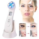 - Tecnología 5 en 1: Radiofrecuencia, terapia LED, masaje EMS, microcorriente y vibración.