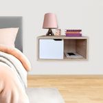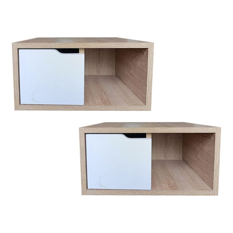 El combo de dos mesas de noche flotantes Alanis natural/blanco con diseño minimalista y simple, es el complemento perfecto para tu habitación. Cada nochero cuenta con un entrepaño y un cajón que hará más fácil la organización de tus objetos. Su combinación de color natural y blanco, brinda un toque de elegancia y sofisticación a tus espacios. Es práctica y de fácil instalación.
