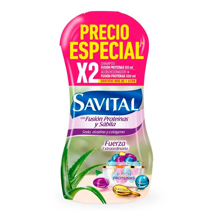 El nuevo Savital Fusión Proteínas contiene proteínas de origen natural como son la proteína de seda, la elastina, y el colágeno y las une al poder de la sábila en su fórmula única, que recubre y refuerza cada fibra capilar haciéndolas más resistentes, dándole una fuerza extraordinaria a tu cabello, dejando tu pelo más brillante y hermoso.
