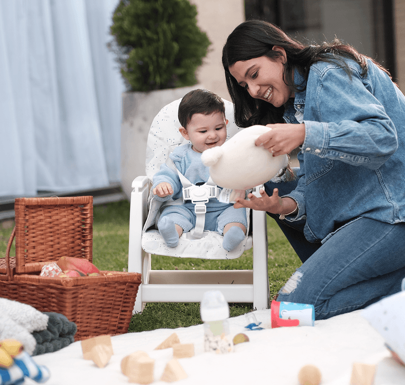 Perfecto para las comidas diarias. Para momentos de relajación y juego. Booster elevador ideal para mesas de adultos, brindando altura adicional. Cuando tu niño crezca, esta silla se convierte en un práctico escritorio, ideal para dibujar, jugar o estudiar. El respaldo con 3 posiciones de reclinación ofrece el máximo confort, mientras que la bandeja ajustable en 3 posiciones y removible facilita la limpieza después de cada comida. Estructura plástica súper duradera y fácil de limpiar, pensada para soportar el uso diario. El arnés de 5 puntos asegura a tu hijo de manera segura, y el montaje es sencillo con botones en lugar de tornillos.