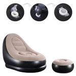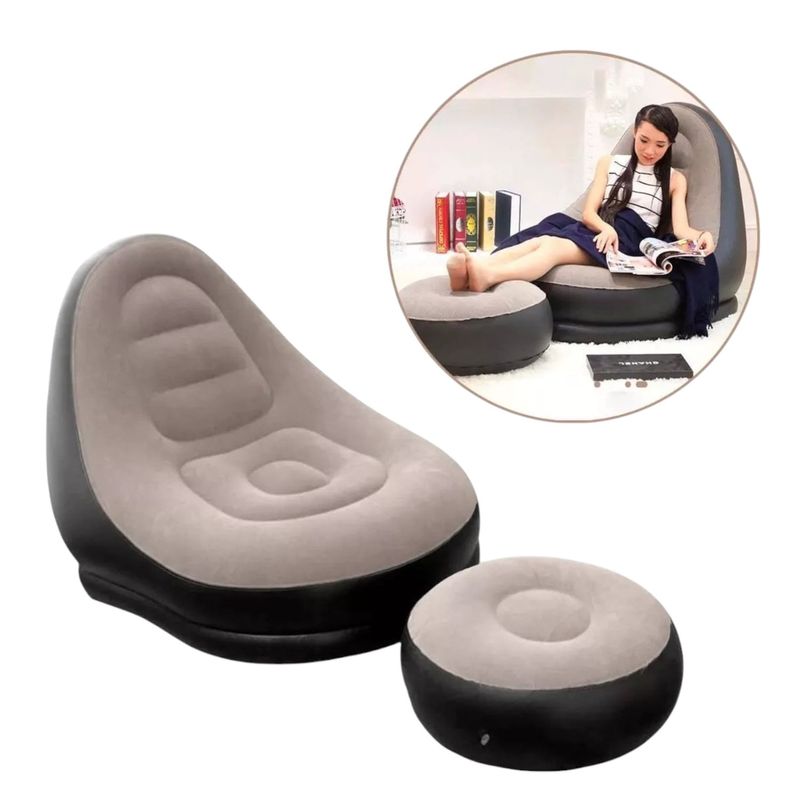 Disfruta de la comodidad donde quieras con este práctico sofá inflable con reposapiés. Su diseño ergonómico y moderno lo convierte en la opción ideal para descansar, leer, ver televisión o relajarte al aire libre. Fácil de inflar y transportar, es perfecto para espacios pequeños, habitaciones juveniles, oficinas, balcones, camping o viajes. Su superficie suave al tacto y su estructura resistente garantizan una experiencia de uso cómoda y duradera.