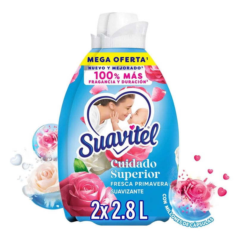 Cuida de tus prendas favoritas utilizando el Suavizante de Ropa Suavitel Cuidado Superior Fresca Primavera en su presentación de 2.8L, que cuenta con una poderosa fórmula que se apodera de las telas para invadir de suavidad y fragancia. Descubre cómo en cada aplicación el suavizante de ropa (antes Soflan Suavitel) te proporciona sus cualidades para mantener el color y una textura agradable al tacto en todo momento. Disfruta de la deliciosa fragancia de Suaviteles que te acompañará durante todo el día y neutraliza los olores desagradables que se adhieren a la ropa durante tus actividades diarias. Con su presentación de 2.8L ml podrás compartir de tus beneficios con los integrantes de tu familia.