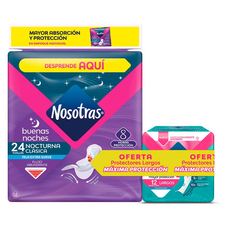 En mercaldas compra Toalla NOSOTRAS buenas noches 24 unds +protectores x12 unds