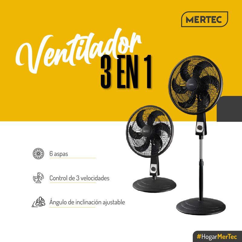 Ventilador 3 en 1 Mertec 18 Pulgadas 3 Velocidades MT-016B Negro
