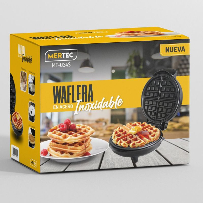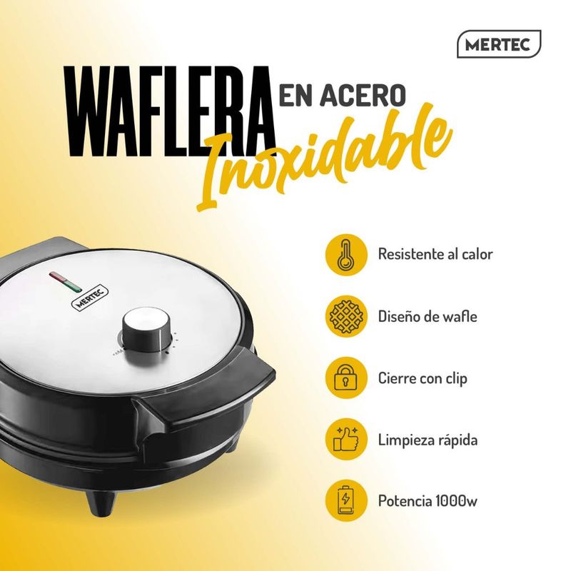 Waflera MERTEC MT-038S de Acero Inoxidable - 1000W, Antiadherente, Control de Temperatura y Diseño Waffle